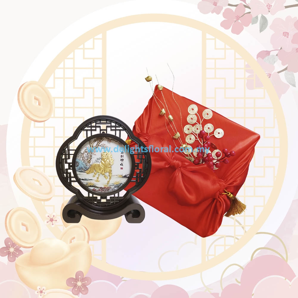 • 24K Golden Art Frame 20x22cm 1pc- Horse • Martell VSOP 70cl • Flower of Life Infinity Energy Diffuser with Plant Therapy Frankincense Essential Oil 10ml • Skylight Abalone 425g • Auspicious Yee Sang (10 pax) 850g with Abalone 180g • Ferrero Rocher T24 300g • Flower Mushroom Gift Pack 200g • Bird’s Nest, Ginseng, Tremella & Rock Sugar 6x70ml • Delights New Year Greeting Card • Elegant Packaging & Decorations • Delivery KL, PJ & Shah Alam