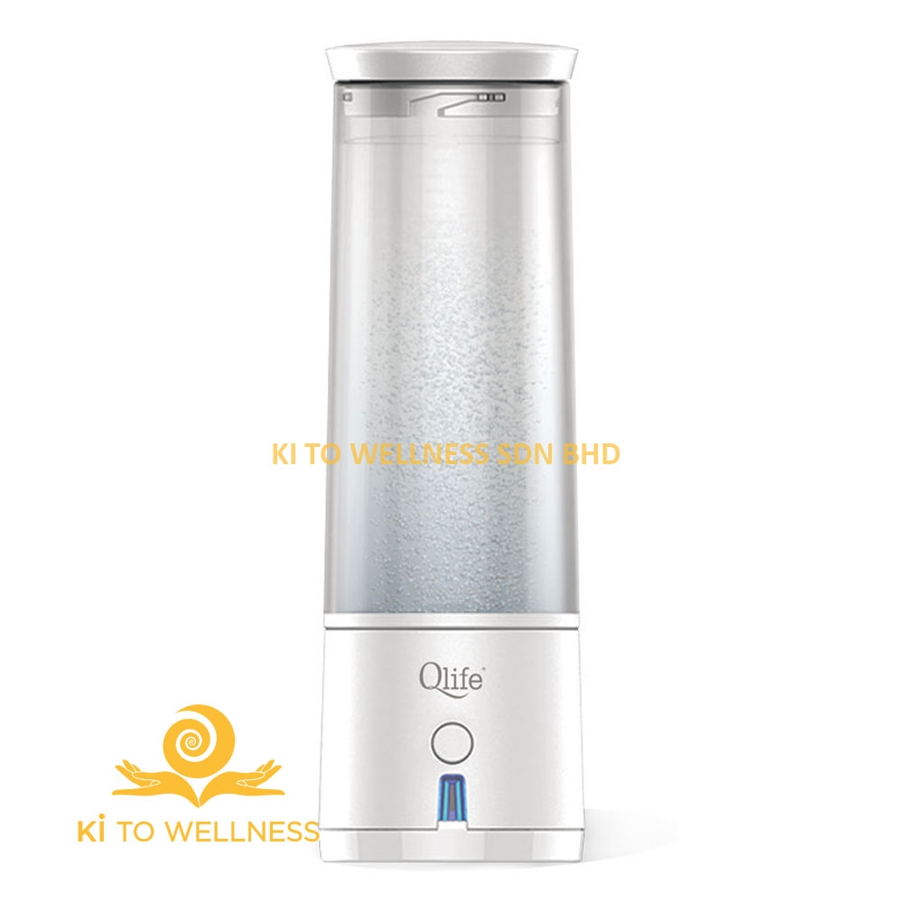 Q-CUP Portable Hydrogen Water Generator The Q-cup will generate the safest & healthiest Hydrogen Water anywhere at any time. Studies have shown that molecular hydrogen water will provide your body the tools it needs to help your body fight off harmful free radicals, reduce oxidative stress & protect you against illness & disease. Benefits : • Improves hydration levels (up to 6 times better than regular water) • Powerful anti-oxidant and anti-aging • Improves nutrition absorption of supplements • Help detoxify by neutralizing free radicals • Anti-Inflammation properties • Improves sleep quality • Improves brain function and memory • Improves muscle-tissue functions and joints mobility Features : • Produces up to 1200 PPB of Hydrogen • Japanese SPE/PEM membrane technology (NO Ozone or Chlorine) • Electrodes Disinfectant /Decalcifying Cleaning System (EDC) • High grade Titanium + Platinum coating Electrodes • Portable and Easy to Use • Turn any drinking water into hydrogen-rich water instantly Specifications : • Volume: 300ml • Weight: 410gm • Hydrogen Generation Time: 5 minutes • Battery Life: Up to 15 to 20 cycles per charge • Hydrogen Concentration: 800 – 1200 ppb (depending on water quality) • ORP: -400 mV – 600 mV (depending on water quality)