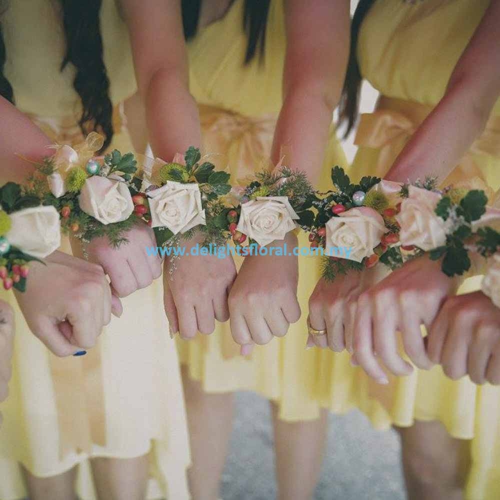 Cream Rose Wrist Flower + Pearl with Diamond (M) mininum order 6 pcs*PRE-ORDER is require. At least 2 days in advance.*